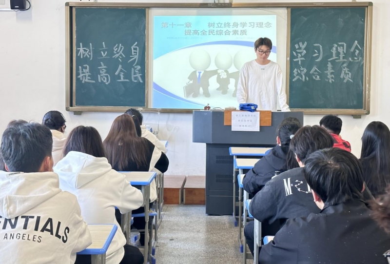 主题讲座中,我院组织学生会成员,分别走进各班级开展宣讲。其中,院学生会主席风景2232班靳睿向广大同学深刻阐述了“我们为什么要读书、学习”这个问题,作为当代青年,开展终身教育和终身学习,并不仅仅是为了获得谋取职业的能力,而更重要的是为了追求人性的完善和人生价值真正的实现。同学们根据自己的实际情况,发表心得体会。大家纷纷表示,学习是不断发展和完善自我的必由之路,在以后的学习工作中,要树立终身学习理念,重视积累,助力就业和发展。