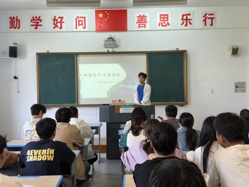 在分享环节,学院邀请了2023年江苏省职业技能大赛获奖学生代表符经纬进行了参赛经验分享,符经纬结合自身从备赛到参赛获奖以来的所思所感,向在场学生分享自主学习方法、技能学习途径以及参赛至今的个人心路历程。符经纬说,“兴趣是最好的老师!每个人只要找到自己的兴趣爱好并不断发展,深耕下去,就一定会取得相应成绩。”他重点介绍了省赛现场的场景以及他备赛、比赛期间的实验准备,他分享道:“技能大赛不只是对技能的考验,更是对一个团队韧性和毅力的考验。每克服一个困难,我们都会觉得充满动力!”在场学生代表全程投入,仿佛跟随符经纬一起体验了备赛的辛苦与比赛现场的紧张角逐。同学们纷纷表示:同辈的交流互动往往更有说服力,也更能促动人,希望学院多多开展此类交流学习活动。最后辅导员王佚兮老师作了总结交流,她肯定了获奖学子扎实的专业技能和直面挑战的奋斗精神,鼓励在场的23级同学们发挥自身优势,以学促思、以思促行、以行促效,将所学所获践行在日常的学习生活中,充分发扬工匠精神,努力提升技能水平,以技能成就梦想,以技能报效祖国。
