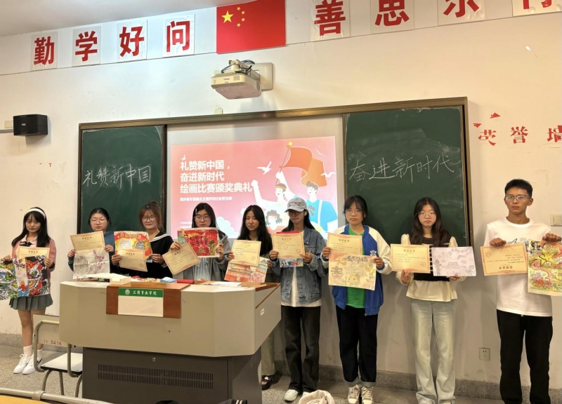 本次活动共分为绘画和征文两部分。绘画围绕“祖国的美好家园”主题,鼓励学生用画笔描绘心中的祖国,展现爱国情怀、民族自豪感及时代新风貌;征文以“新中国的故事”为主题,鼓励学生通过文字记录自己对新中国发展历程的理解与感受,突出思想性、艺术性、时代性,讲述身边的爱国故事,表达对祖国的热爱与祝福,弘扬爱国情怀,增强民族自豪感。最后,经过学院评比,本次活动获奖情况如下。环评2401郭跃、环境2401严浩菡荣获一等奖;环境2402嵇梦想、园林2402王静、环评2401孙梦琦荣获二等奖;轨道2401王雯婷、生态2401邱月、风景2401陆宸悠、风景2401姜宁、燃气2402韩欣锐、环评2401李金鑫荣获三等奖。