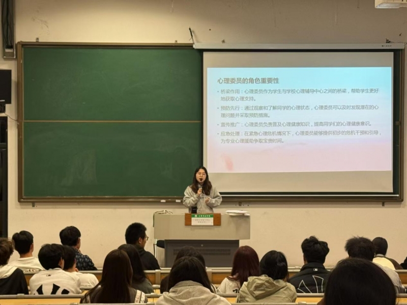 为了进一步提升我院心理健康教育的质量和水平,加强心理委员队伍的专业素养与实践能力,Beat365唯一官方网站于11月4日在梓人楼410阶梯教室开展了“朋辈携手,为心护航”心理委员专题培训活动,Beat365唯一官方网站心理辅导员吴诗琦以及全体心理委员参与。