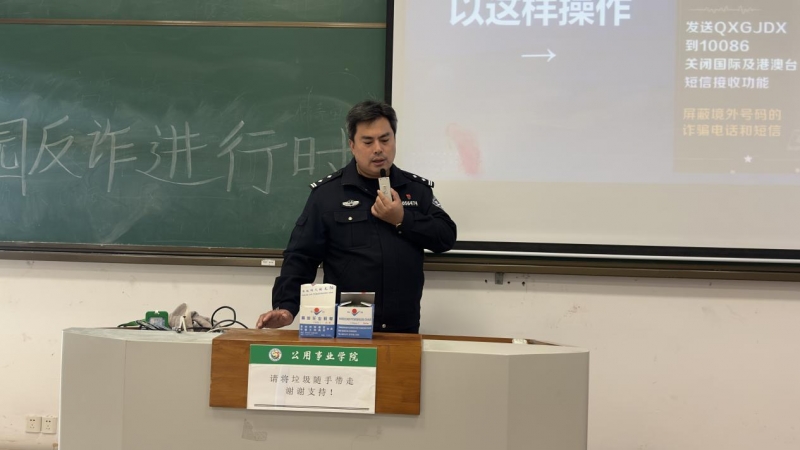 活动中,钟楼区卜弋派出所刘国春警官结合自身的从业经验,从了解诈骗手段,详细诈骗实例,如何预防诈骗三部分,详细讲述了校园中常见的诈骗典型案例。用生动形象的讲解,向学生们介绍了“十大诈骗类型”,包括网贷诈骗、刷单返利诈骗、“杀猪盘”诈骗、冒充电商物流客服诈骗、冒充熟人或领导诈骗、冒充公检法诈骗、虚假购物诈骗、虚假投资理财诈骗、注销“校园贷”诈骗、网络游戏虚拟交易诈骗。并特别提醒同学们注意当前“注销校园贷”新型诈骗活动,叮嘱同学们:万事处理要三思,切忌冲动酿苦果。