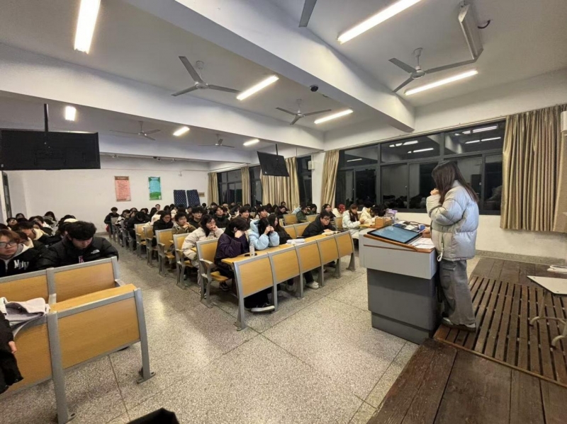 会议伊始,王彤老师深入浅出,首先强调了社会实践对于同学们成长的重要意义,社会实践不仅是课堂知识的延伸,更是同学们接触社会、了解国情、增长才干的关键契机,能让大家在亲身体验中锻炼沟通、协作等多方面能力,为未来步入职场、融入社会筑牢根基;接着,王彤对2025年寒假社会实践的各类实践主题进行了详细讲解,并对实践过程中的安全问题进行着重提醒和部署;随后,学生会实践部代表作社会实践倡议发言;最后,同学们踊跃提问,问题涉及实践报告撰写规范、团队组建技巧、突发情况应对策略等,老师均给予专业且详尽的答复,消除同学们的顾虑,增强大家参与实践的信心,确保各班团支书充分掌握社会实践部署工作。