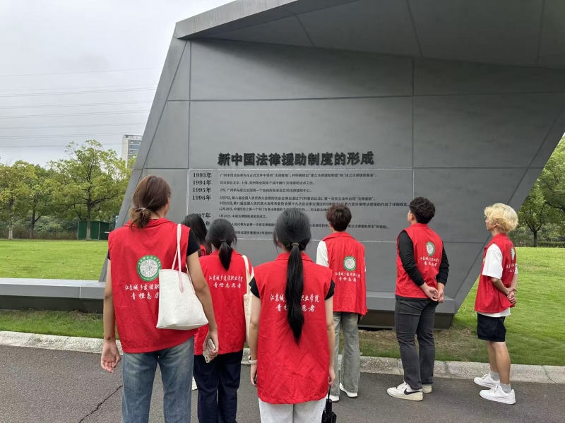 活动伊始,在常州市法律援助主题公园的法治长廊上,辅导员王彤老师结合园区内的法治景观,开展了一场生动的法治知识宣讲。从法律责任的内涵到生活中常见的法律案例,用通俗易懂的语言,将抽象的法律条文转化为贴近生活的场景故事,让参与同学对法律知识有了直观且深刻的认识,为后续的实践环节奠定了扎实的理论基础。